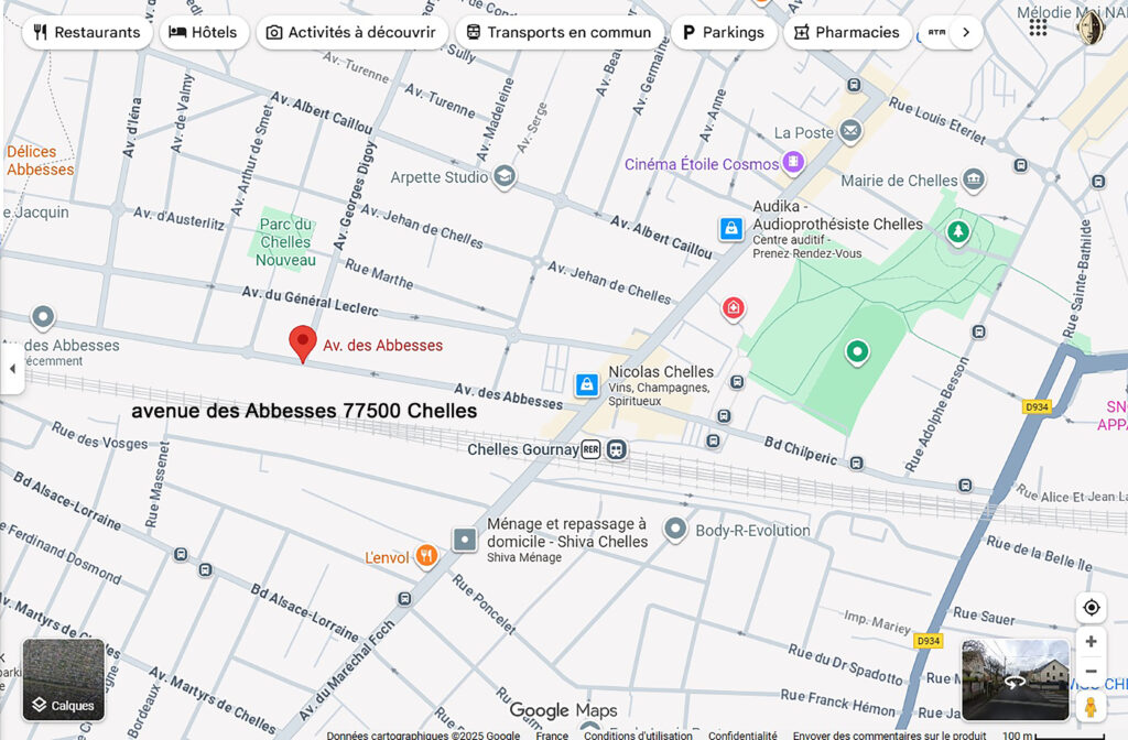 Pour Chelles (77500), il y a un très bon point de repère pour vous situer : c’est la gare de « Chelles-Gournay ». Nous sommes situés dans l’avenue des Abbesses 77500 Chelles. Vous avez environ 10 mn à pieds de la gare.